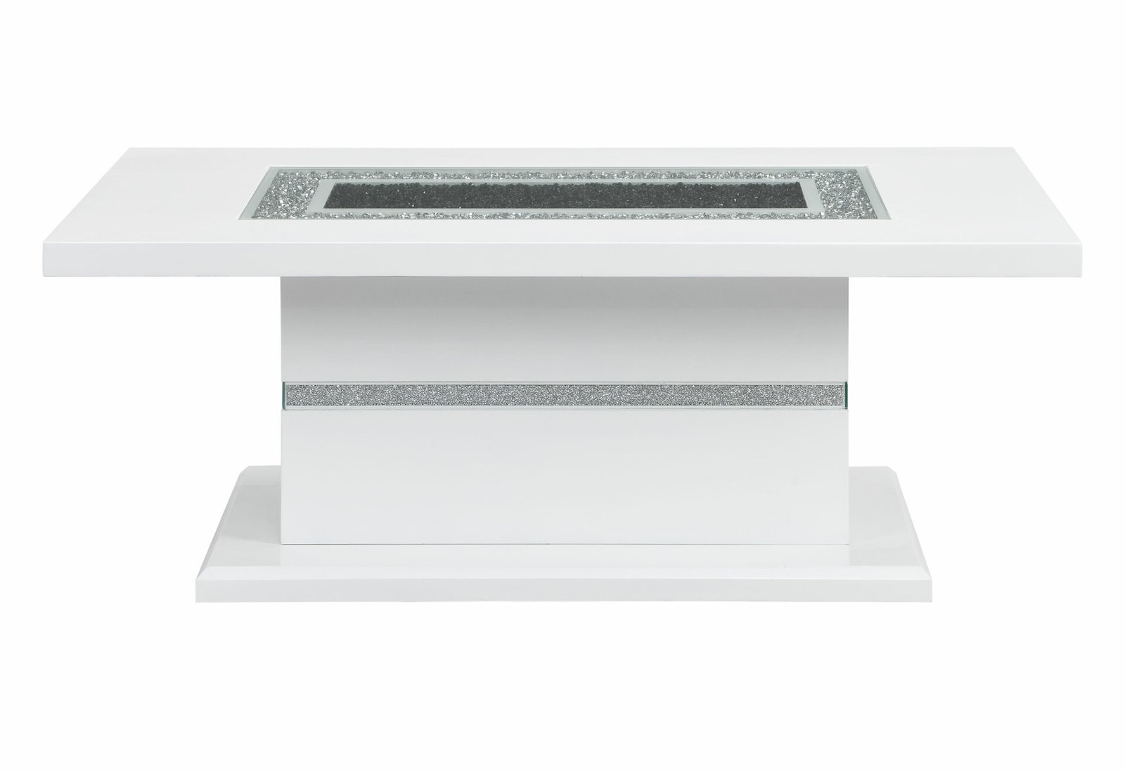 This table is a showcase example of how charm and a touch of elegance can dramatically change the look of your eating area. This table includes glitter detailing style elements with a sturdy construction and a high gloss finish with a clear glass inlay to round off the look. Constructed of MDF, Glass and Acrylic this dining table makes a bold statement. Finished in a White and Silver with a center glass, rectangle shape and pedestal base you will have more than enough room to entertain.