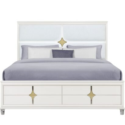 The centerpiece of the Orion Bedroom Collection, the Orion Bed features a stunning upholstered headboard with integrated LED accent lighting. Its sleek design is enhanced by the collection’s signature gold accents and acrylic legs, making it a luxurious addition to your sleeping space.