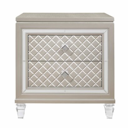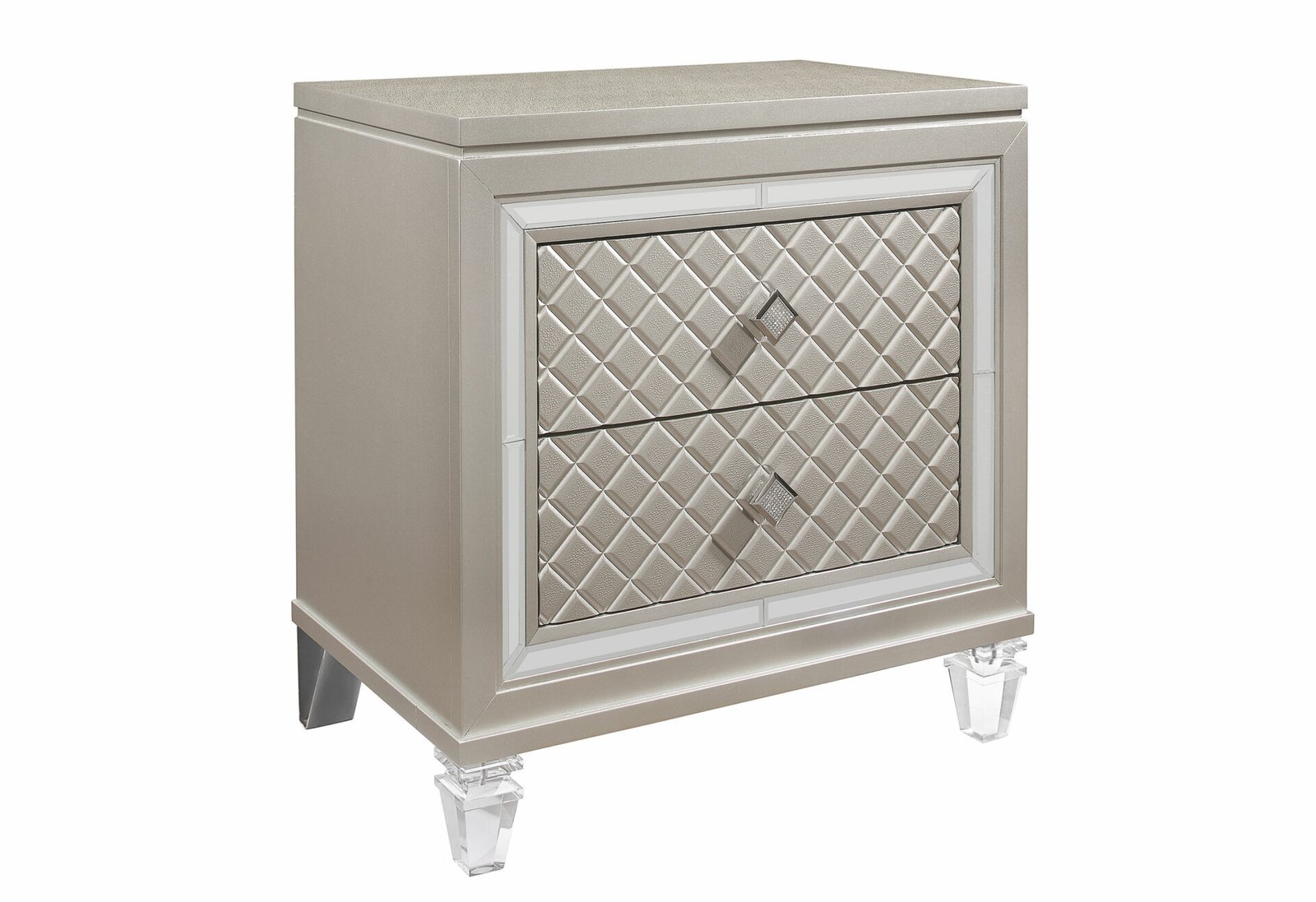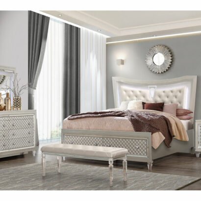 Old Hollywood Glam styling with all of the modern day features that today’s consumer has come to expect. From the eye-catching platinum metallic finish, to the fancy acrylic legs and ambient LED lighting, the Paris bedroom collection is a true show stopper.