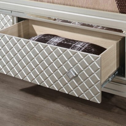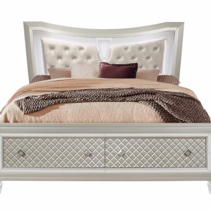 Old Hollywood Glam styling with all of the modern day features that today’s consumer has come to expect. From the eye-catching platinum metallic finish, to the fancy acrylic legs and ambient LED lighting, the Paris bedroom collection is a true show stopper.