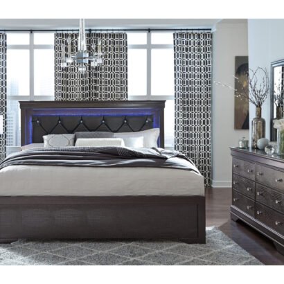 A fresh new look to a classic design defines the Pompei bedroom collection. By adding ambient LED lighting with crystal and faux croc accents, we’ve given a timeless style a modern update.