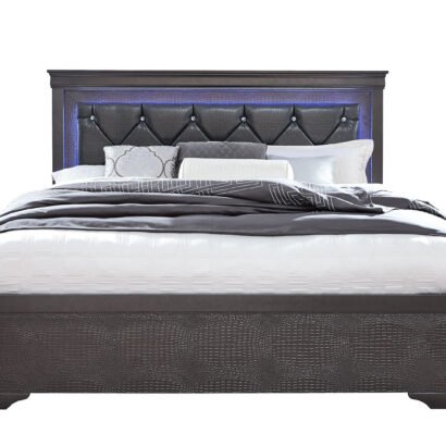 A fresh new look to a classic design defines the Pompei bedroom collection. By adding ambient LED lighting with crystal and faux croc accents, we’ve given a timeless style a modern update.