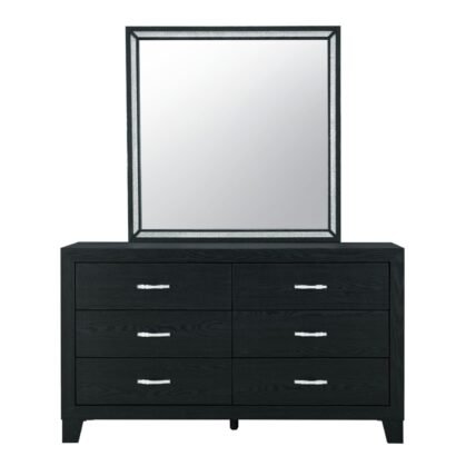 The Reid Dresser from the Reid Bedroom Collection is a stylish storage solution with a sleek black wood finish and glamorous hardware. This dresser combines form and function to enhance your bedroom decor.