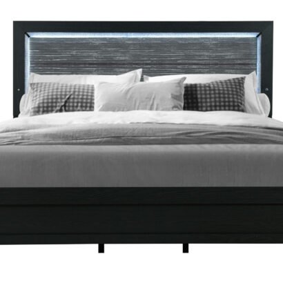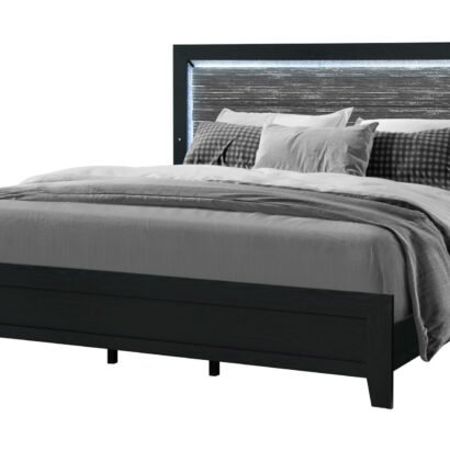 The Reid Bed from the Reid Bedroom Collection offers a luxurious centerpiece for your bedroom. Featuring an upholstered headboard with LED accent lighting, this bed combines style and functionality effortlessly.