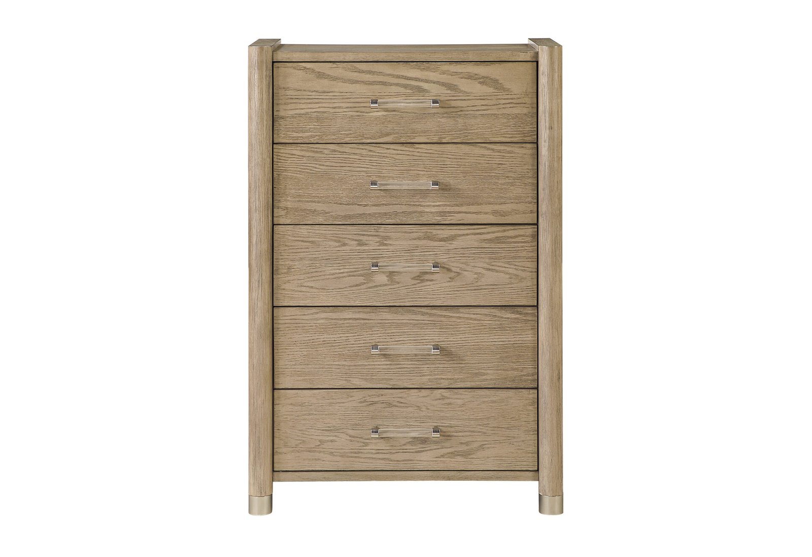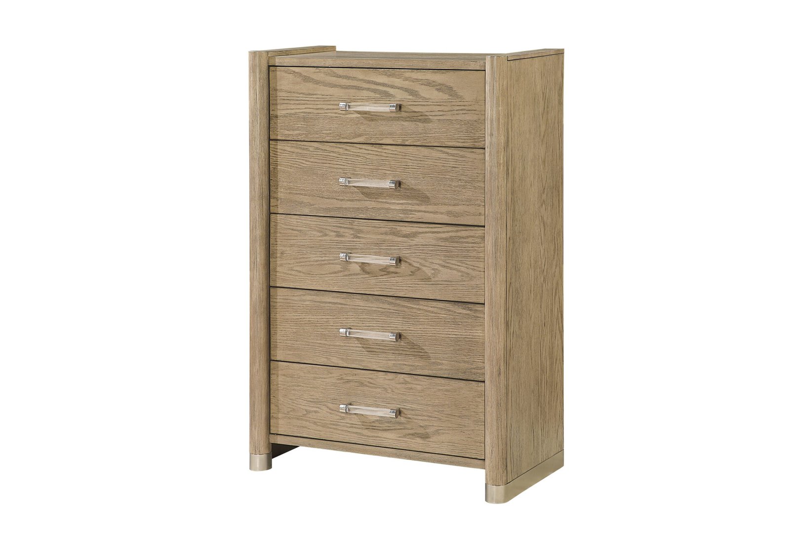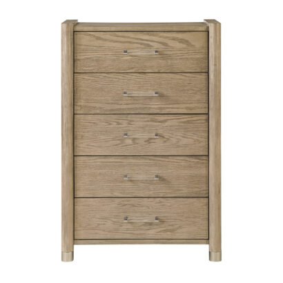 The Santo Chest offers generous vertical storage with a sleek profile and a warm brown oak finish. Its tall, streamlined design makes it ideal for maximizing storage in compact spaces while maintaining the cohesive, classic look of the Santo Collection.