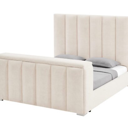 Experience the ultimate in luxury and innovation with the Serenity Buff Bed by Global Furniture. Fully upholstered in a soft, elegant cream fabric, this statement bed blends plush comfort with advanced functionality. The design features thick fluted detailing throughout, adding rich texture and a bold, modern aesthetic.