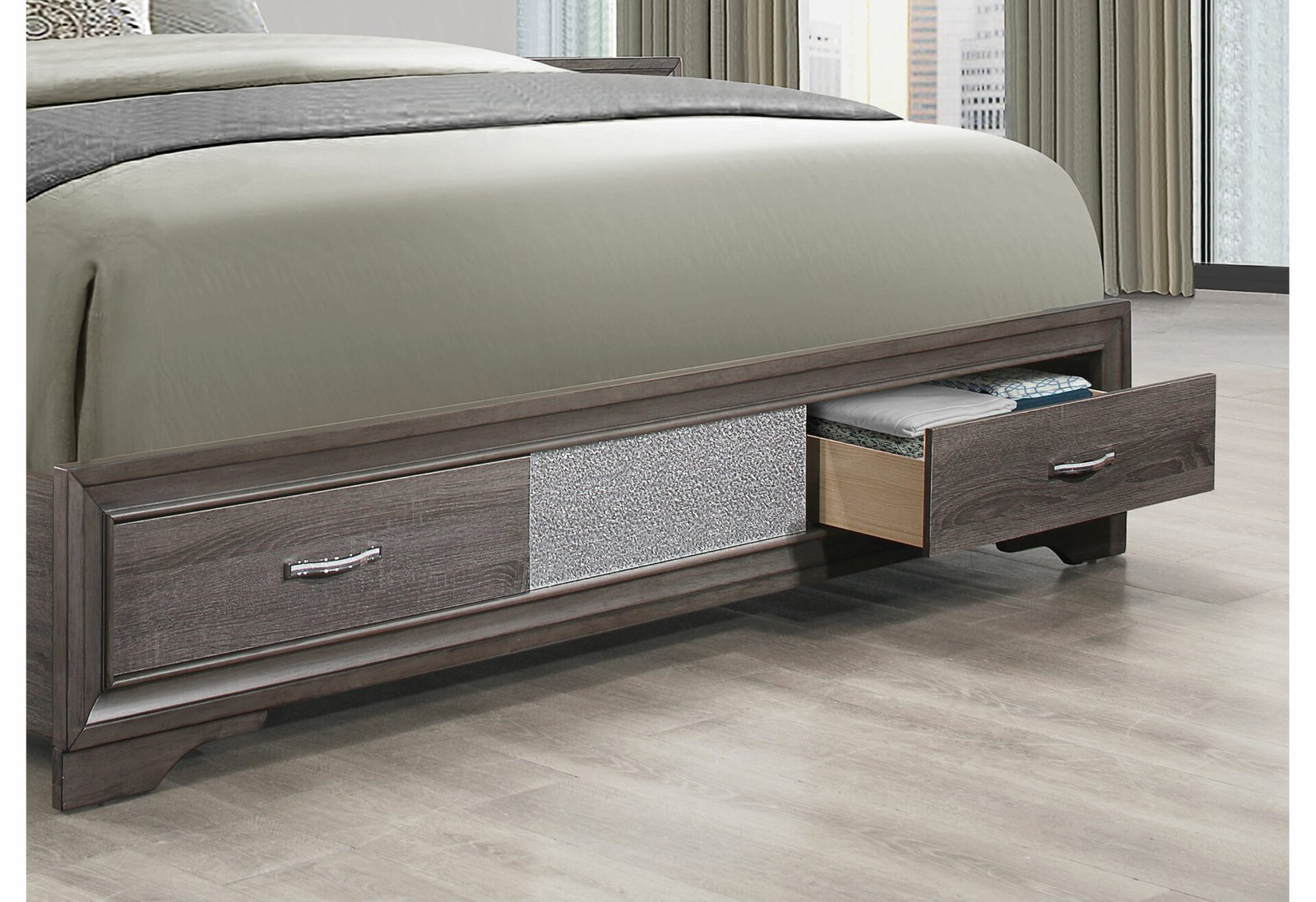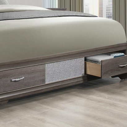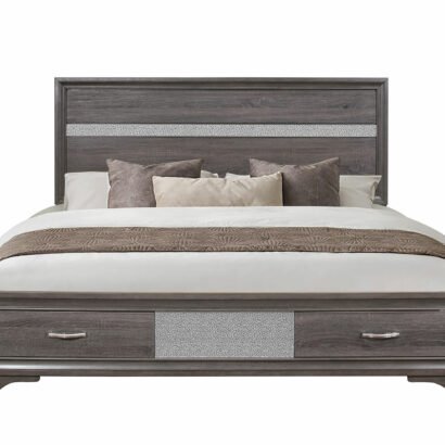 Make your bedroom sparkle with the Seville bedroom collection. Featuring an on-trend weathered grey finish accented with just the right amount of bling, jewelry and under bed storage, the Seville offers uncompromising style and value.