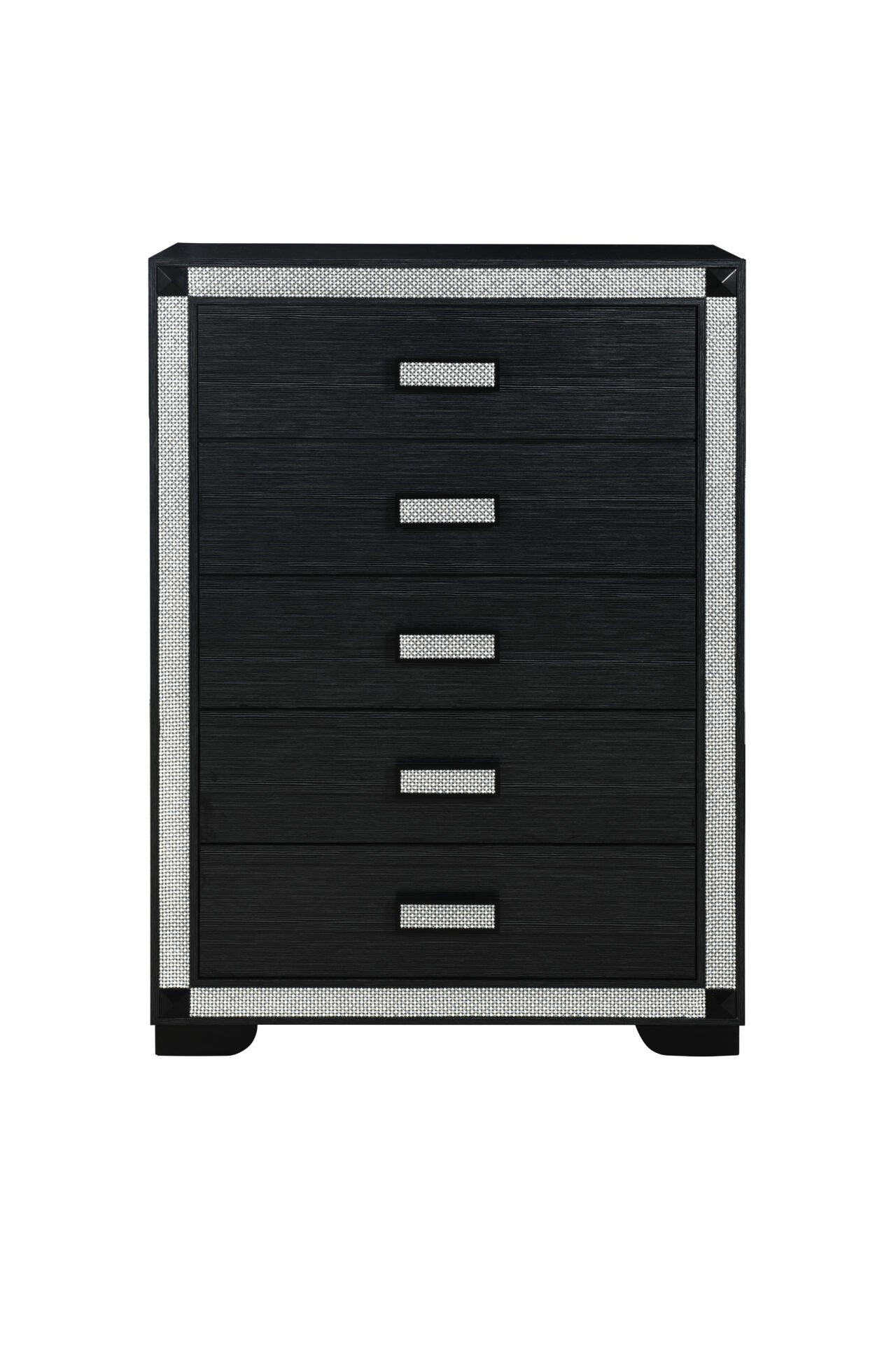 Maximize storage without sacrificing style with the Soleil Chest. Its tall, sleek profile is enhanced by the crushed crystal encasement and polished handles, while multiple drawers keep your essentials organized and your bedroom looking effortlessly elegant.