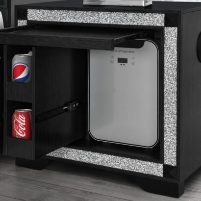 Transform your bedroom into a glamorous sanctuary with the Soleil Bedroom Collection by Global Furniture USA. Finished in a rich dark charcoal, this striking group is designed to make a statement. The centerpiece is the queen bed, featuring a plush grey upholstered headboard framed with glittering silver crushed crystal trim and accented with integrated LED lighting for a soft, elegant glow. Every case piece—from the dresser to the chest—is encased in the same dazzling crushed crystal trim, including matching crystal-accented handles, creating a cohesive and luxurious aesthetic. Soleil brings together rich textures, modern design, and sparkling details, elevating your space into a high-end retreat.