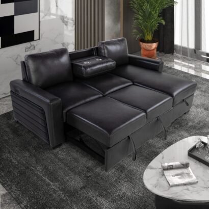 Discover the Global Furniture U1830 Pull-Out Sofa Bed, a stunning blend of contemporary design and practicality. This sleek piece features a stylish blanche charcoal upholstery, drop down table and usb connectivity ensuring you are both comfortable and connected. The plush cushioning ensures optimal relaxation while the robust frame and user-friendly pull-out mechanism enable a seamless transition from sofa to bed.