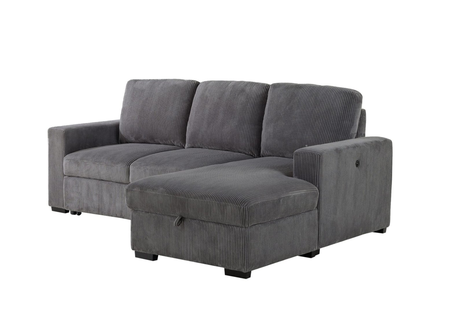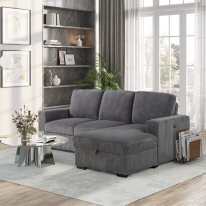 Finished in a handsome Grey corduroy fabric, this sectional exudes a contemporary charm that effortlessly complements a variety of interior styles. The luxurious fabric adds a cozy and inviting feel to your living room, creating a warm and welcoming atmosphere for you and your guests.