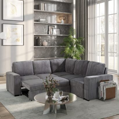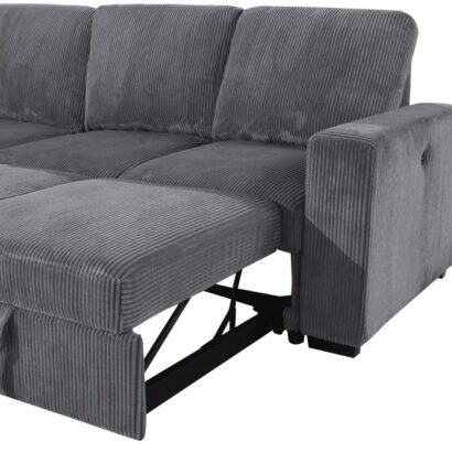 Finished in a handsome Grey corduroy fabric, this sectional exudes a contemporary charm that effortlessly complements a variety of interior styles. The luxurious fabric adds a cozy and inviting feel to your living room, creating a warm and welcoming atmosphere for you and your guests.