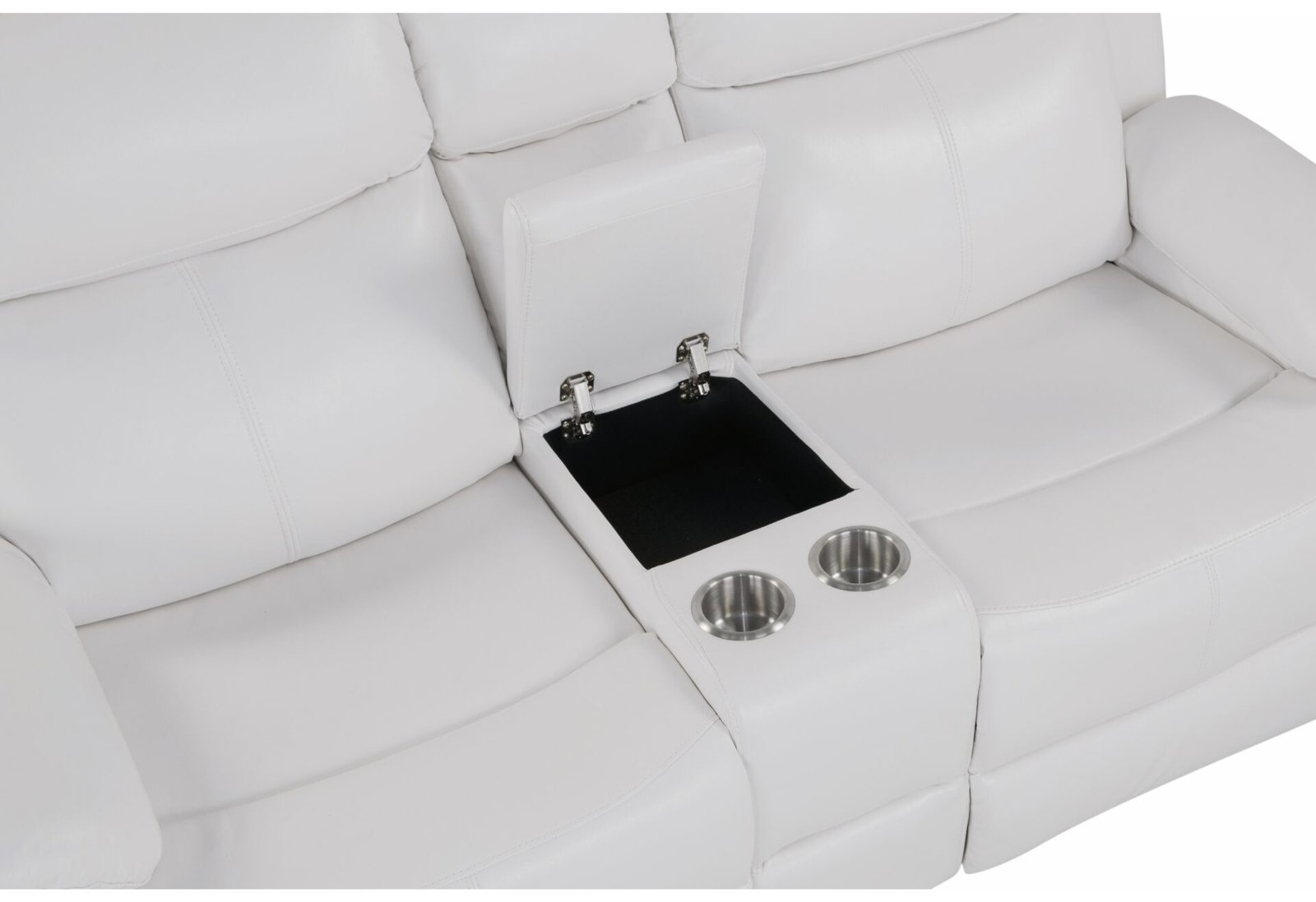 U6026 BLANCHE WHITE CONSOLE RECLINING LOVESEAT WITH LED AND SPEAKER