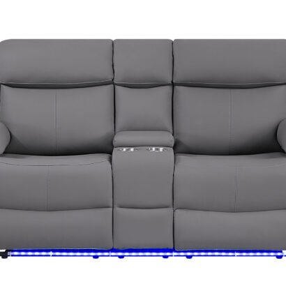 U6026 GREY PU 46A CONSOLE RECLINING LOVESEAT WITH LED