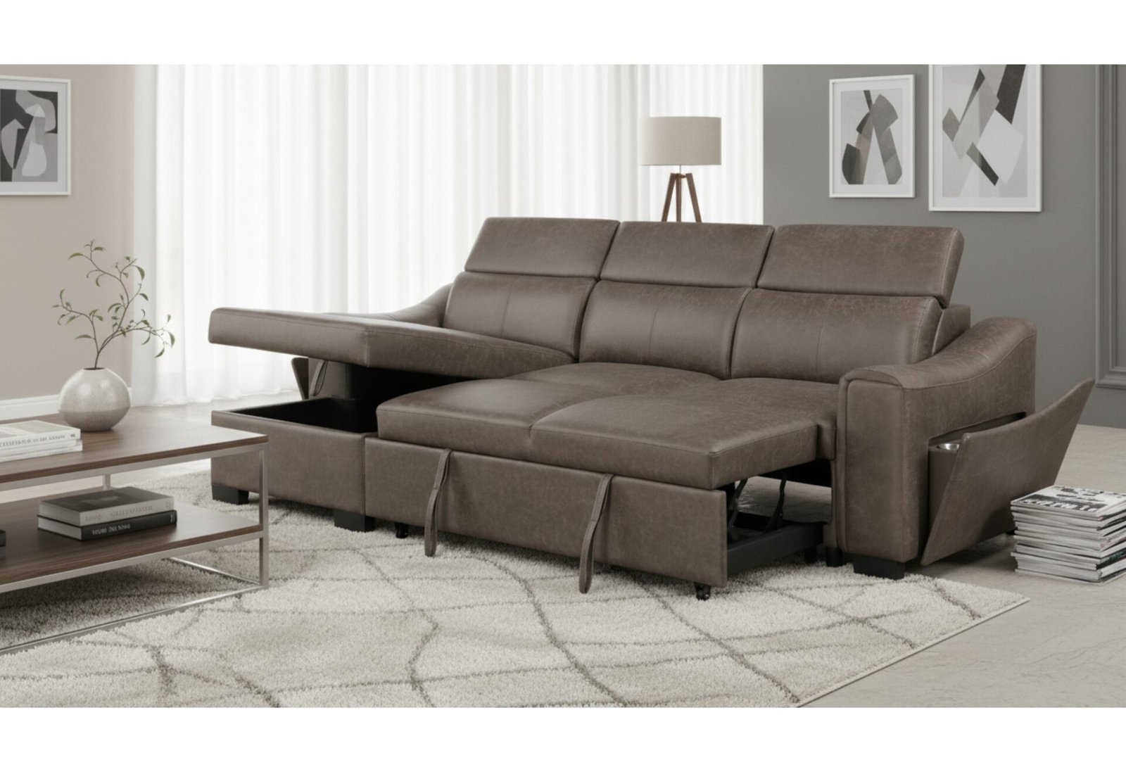 Experience the perfect blend of style, comfort, and innovation with the U6638 Pull-Out Sectional by Global Furniture USA. Upholstered in a rich brown printed microfiber, this sectional offers a warm, sophisticated look with a soft, textured feel that enhances any modern living space.