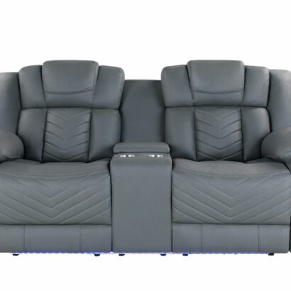 The U7068 Power Reclining Console Loveseat is the ultimate centerpiece for any home theater or living room. Beyond its comfortable power reclining seats, this loveseat boasts a center console equipped with storage console and cup holders, ensuring your entertainment needs are always within reach. The neutral grey PU fabric is both stylish and durable, while the over-stuffed cushions provide an exceptionally comfortable seating experience. Whether you’re enjoying a movie night or simply relaxing, this loveseat offers the perfect blend of functionality and comfort.