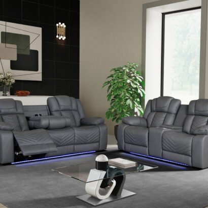 U7068 GREY 10 POWER RECLINING SOFA/POWER CONSOLE RECLINING LOVESEAT WITH LED