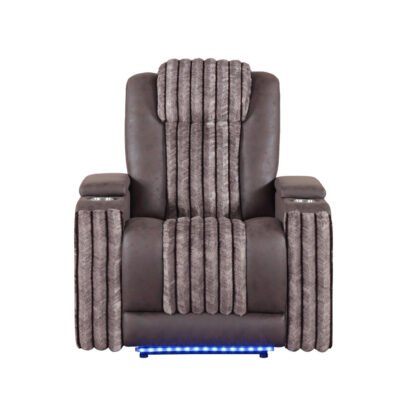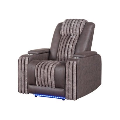 Relax in refined comfort with the U8000 Brown Recliner. Wrapped in supple brown upholstery with corduroy faux fur accents, this recliner offers dual power functionality, ambient LED lighting, and convenient cupholders. Designed to deliver both comfort and visual sophistication, it’s the ideal finishing touch to the U8000 Collection or a standout piece on its own.