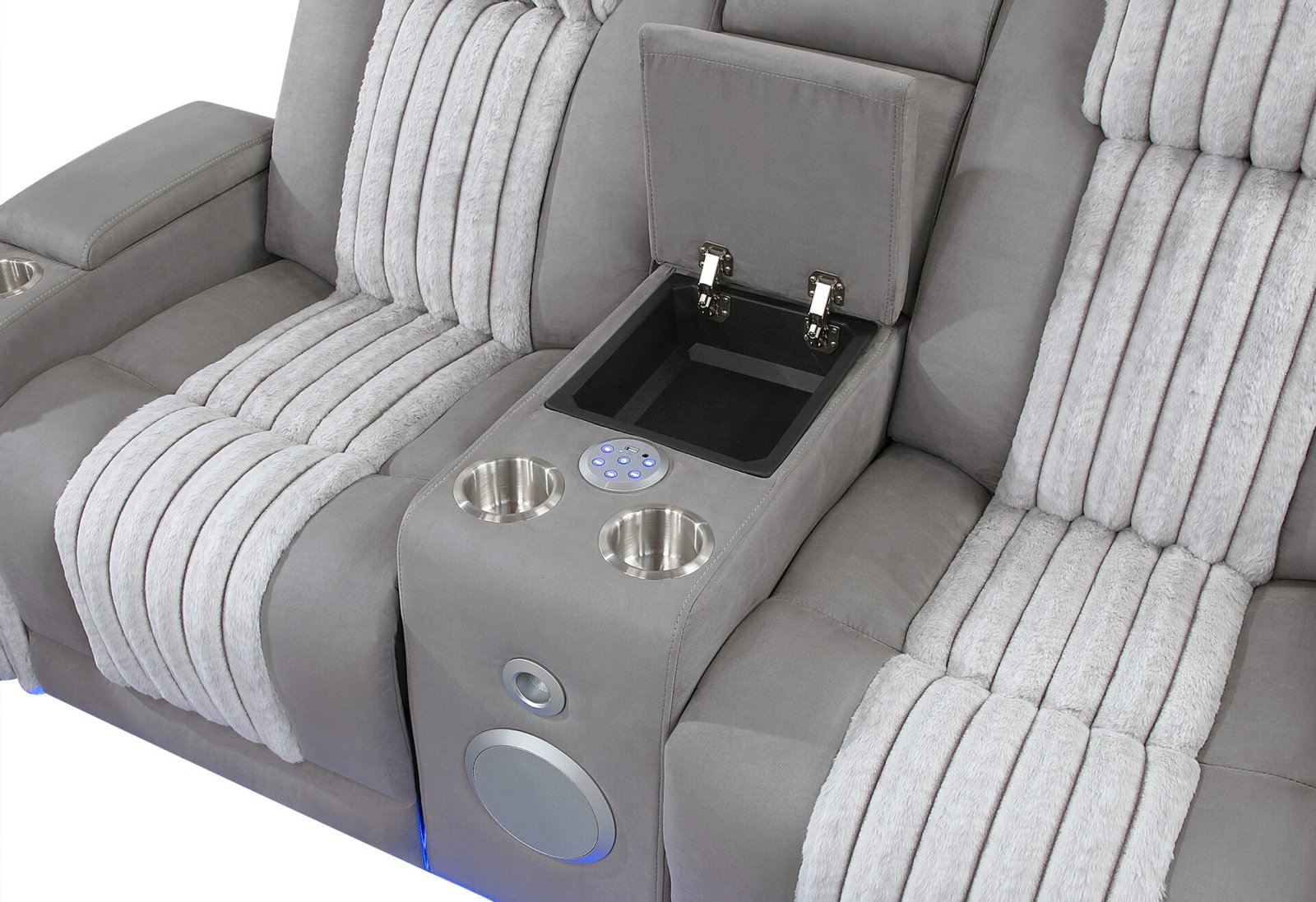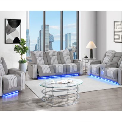 Experience next-level relaxation with the U8000 Dual Power Reclining Collection by Global Furniture USA, where innovation meets luxury. Each piece features dual power recline for personalized comfort and integrated LED lighting that enhances the room’s ambiance. Every arm includes cupholders, blending convenience with contemporary design. The power reclining sofa boasts a drop-down table with reading lights, ideal for movie nights or cozy evenings in, while the power console reclining loveseat features a storage console and built-in Bluetooth speaker, transforming your living room into a stylish entertainment hub.