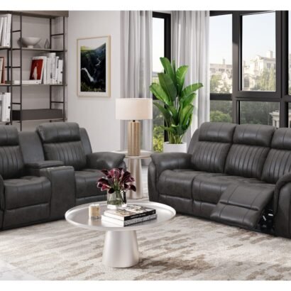Enhance your living room with the U8517 collection by Global Furniture USA. An elegant living room set finished in easy-to-care charcoal fabric, and generously stuffed for additional comfort this set is designed for maximum relaxation. The reclining feature provides unmatched comfort and support, while the set is expertly crafted with high-quality materials to ensure durability and longevity. Providing you with ultimate relaxation after a long day, this stylish and functional set is a great way to update your living space.