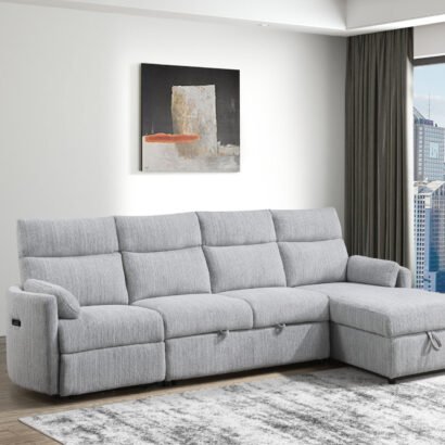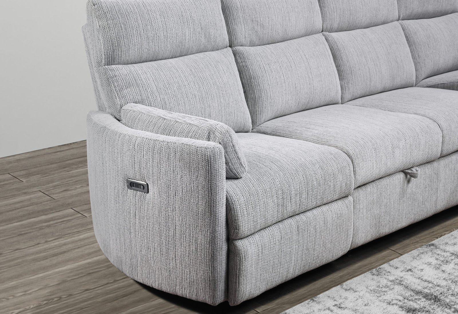Experience the perfect blend of comfort, functionality, and modern design with the U8571 Sectional. Upholstered in a soft, textured grey fabric, this versatile piece is thoughtfully crafted for today’s lifestyle. It features a smooth power recliner equipped with a built-in USB port for convenient device charging right at your fingertips. The sectional also includes a pull-out sleeper bed, making it ideal for overnight guests or relaxing movie nights. Plus, the spacious chaise opens up to reveal hidden storage, perfect for stashing blankets, pillows, or living room essentials. Whether you’re lounging, entertaining, or hosting, the U8571 delivers comfort and practicality in a sleek, contemporary silhouette.