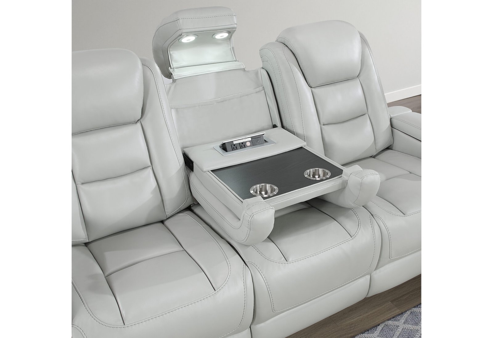 Thoughtfully crafted details set the U8609 apart, including studded accents along the arms and hidden storage in the armrests, with convenient pocket storage on the sides illuminated by built-in LED lighting. The sofa includes a drop-down table equipped with USB ports, power outlets, cupholders, and reading lights—perfect for both entertaining and relaxing. The console loveseat adds additional functionality with storage and cupholders, while each piece features a USB port on the power switch for added convenience. Stylish, innovative, and built for comfort, the U8609 Upholstery Set transforms your living space into a true retreat.