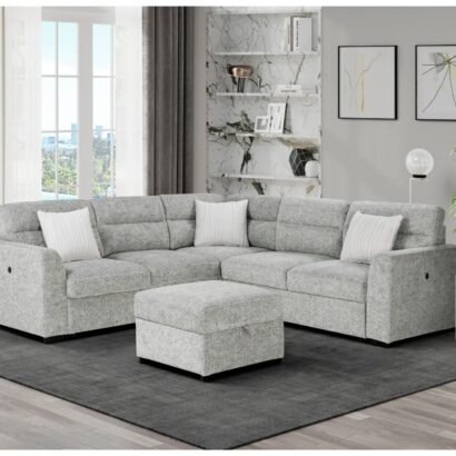 U9401 NICKEL SOFA BED SECTIONAL WITH 3 PILLOWS AND OTTOMAN