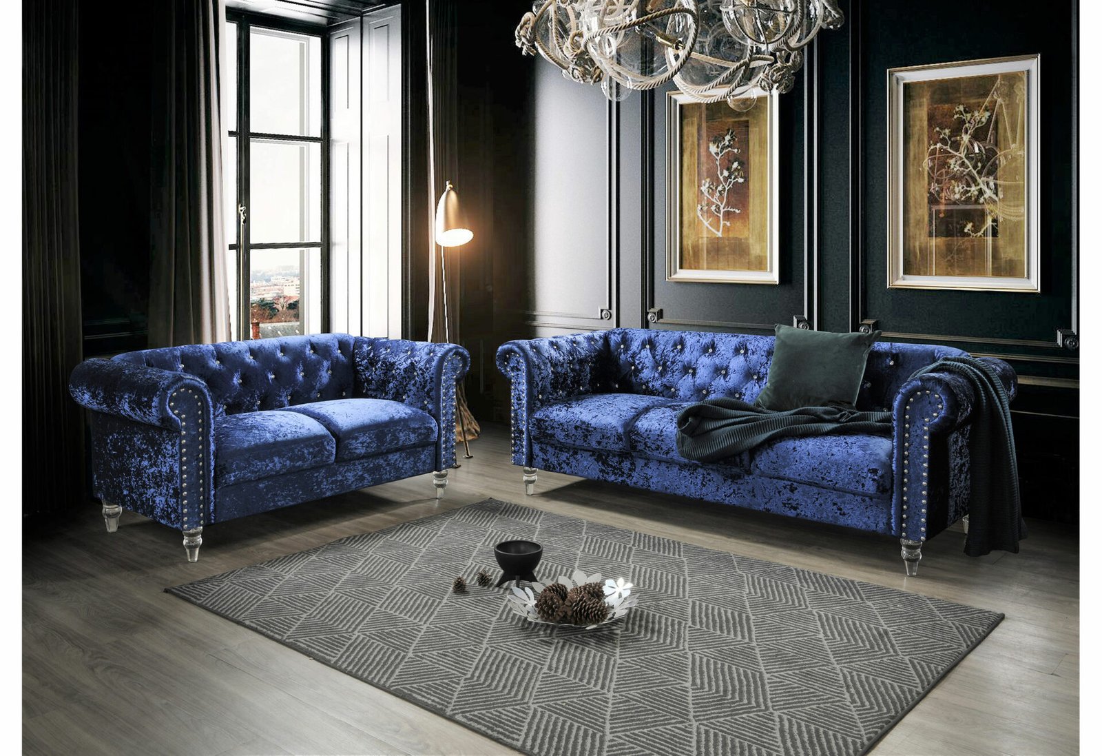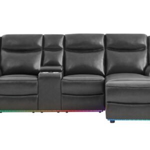 The 3 over 3 design has leather like fabric which makes for a comfortable feel and design. The rolled arm is accented by chrome nail heads and outlines the transitional style.