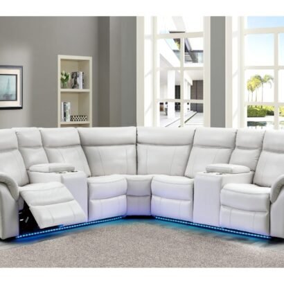 The UM02 Black Sectional by Global Furniture USA is a stunning and comfortable addition to any living room. The sectional is upholstered in black bonded leather and features overstuffed cushions and power recline for maximum comfort. The LED accent lights along the base of the sectional provide a soft and inviting ambiance, perfect for movie nights or entertaining guests. The sectional is expertly crafted with high-quality materials, ensuring durability and longevity. Add this stunning sectional to your living room to enjoy years of comfort and style.