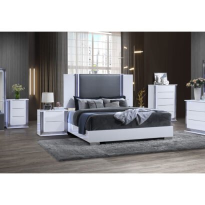 Introducing the Ylime Collection by Global Furniture USA – a stunning addition to any bedroom. Crafted with a sleek, deco modern design, this collection features rich chrome accents on all pieces and LED accent lighting. The real showstopper is the LED accents that add a touch of luxury and sophistication to the overall look. An available large matching vanity with stool makes this one of the most accommodating, complete solutions for your bedroom.
