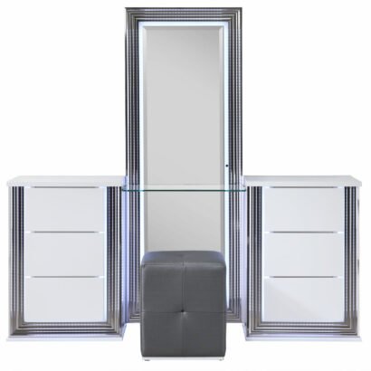 Introducing the Ylime Collection by Global Furniture USA – a stunning addition to any bedroom. Crafted with a sleek, deco modern design, this collection features rich chrome accents on all pieces and LED accent lighting. The real showstopper is the LED accents that add a touch of luxury and sophistication to the overall look. An available large matching vanity with stool makes this one of the most accommodating, complete solutions for your bedroom.