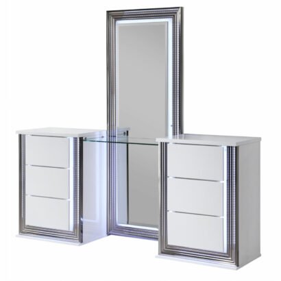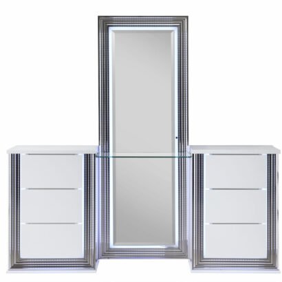 Introducing the Ylime Collection by Global Furniture USA – a stunning addition to any bedroom. Crafted with a sleek, deco modern design, this collection features rich chrome accents on all pieces and LED accent lighting. The real showstopper is the LED accents that add a touch of luxury and sophistication to the overall look. An available large matching vanity with stool makes this one of the most accommodating, complete solutions for your bedroom.