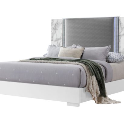 YLIME WHITE MARBLE KING BED FULLY SLATTED WITH LED