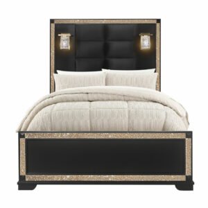 BLAKE BLACK QUEEN BED WITH LAMPS