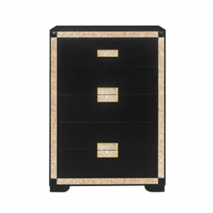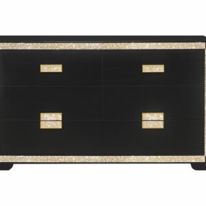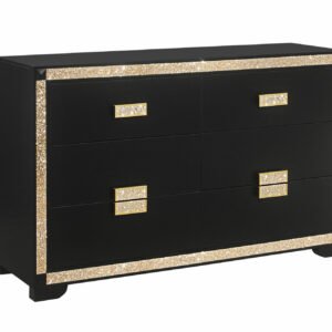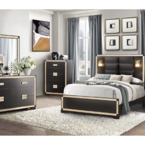 BLAKE BLACK/GOLD QUEEN BED WITH LAMPS, DRESSER, MIRROR, NIGHTSTAND