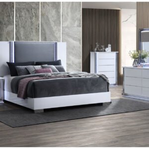 ZAMBRANO WHITE KING BED WITH LED