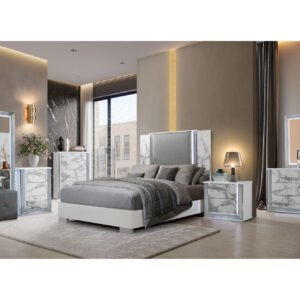 YLIME WHITE MARBLE QUEEN BED GROUP FULLY SLATTED